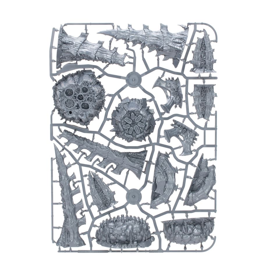 This multipart plastic kit builds 15 pieces of thematic terrain for your games of Kill Team and Warhammer 40,000. They are ideal for adding some Tyranid flavour to your battlefield and opening up new narrative options.