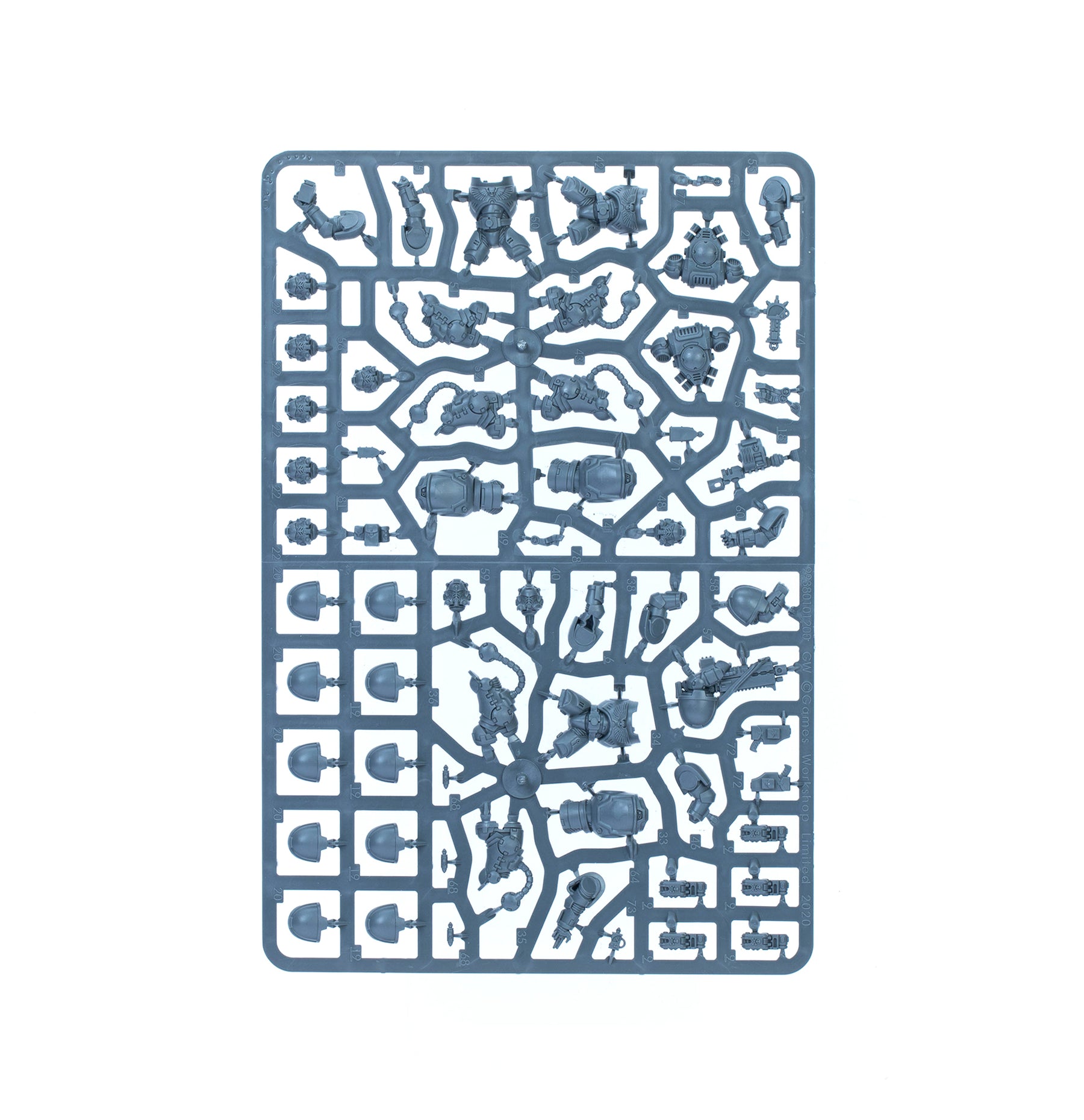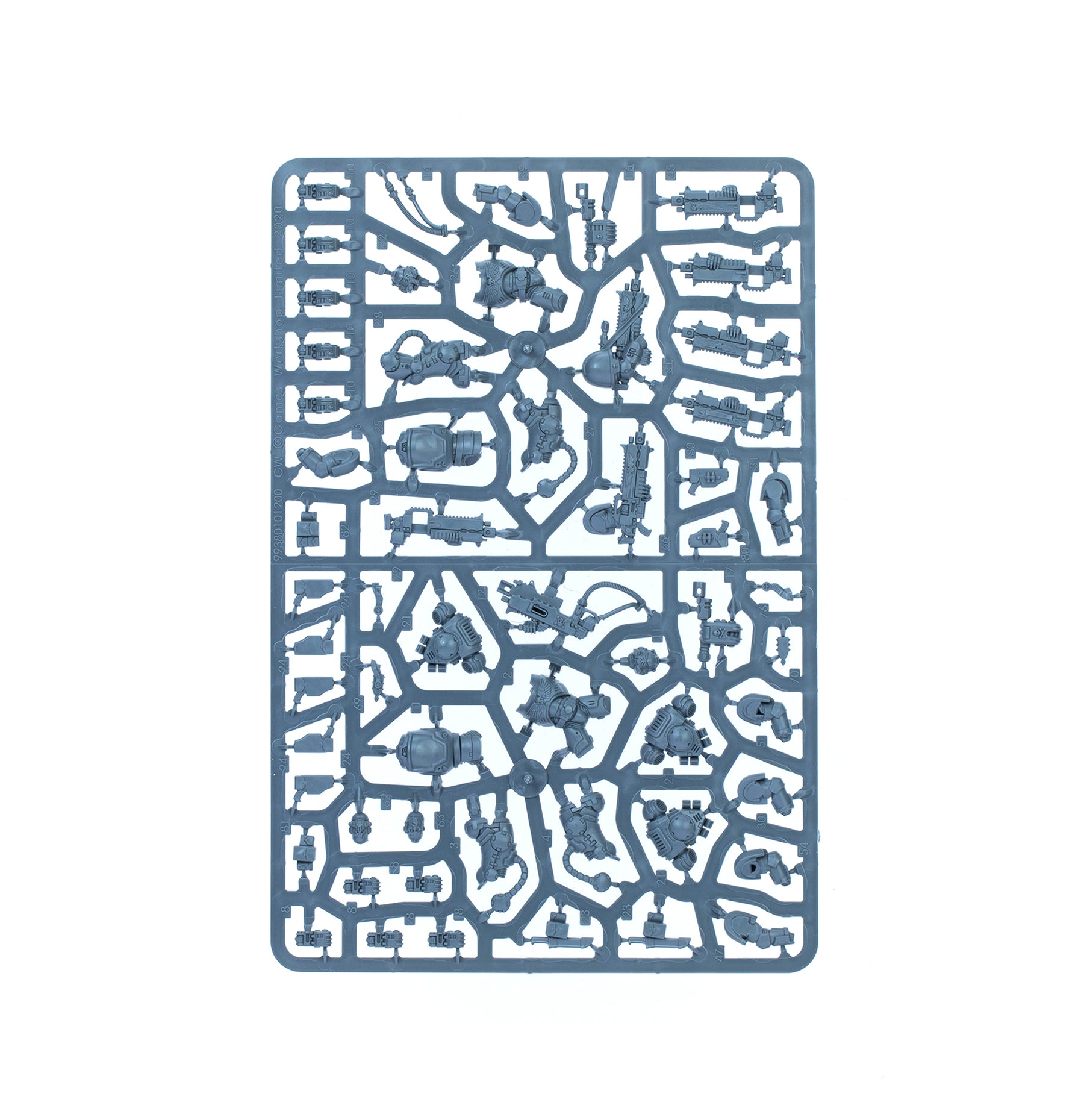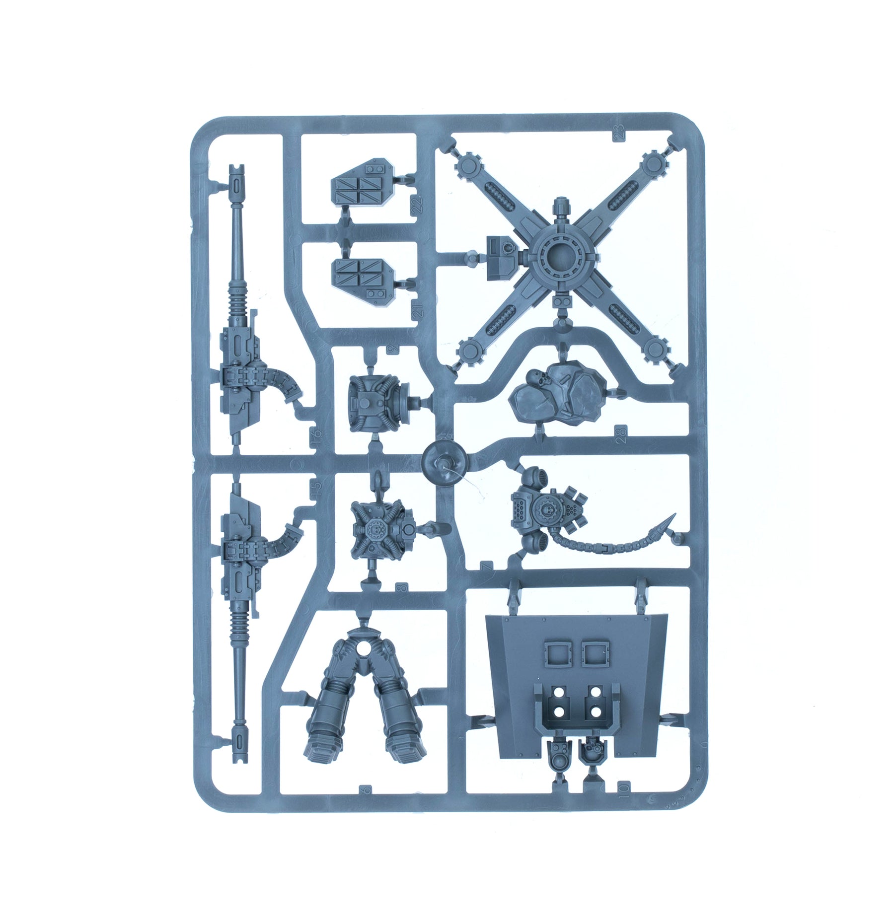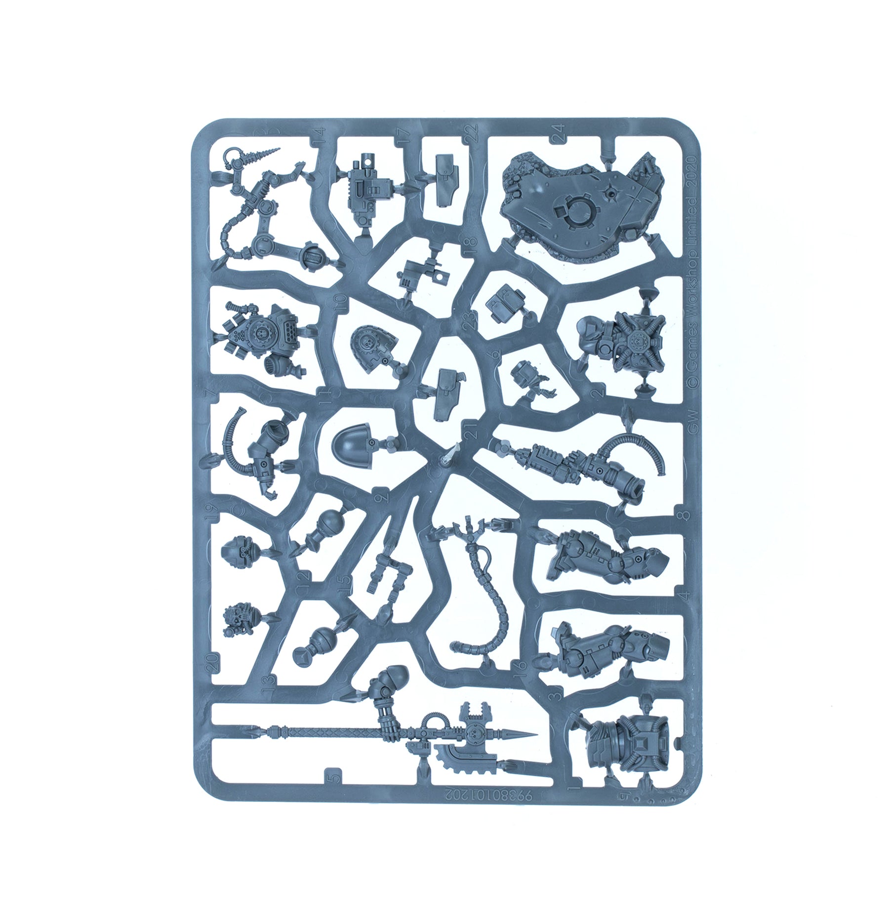 The miniatures in this box are easy to customise. The Techmarine has the choice of two heads – helmeted and bare – and either an open hand or a grav-pistol.