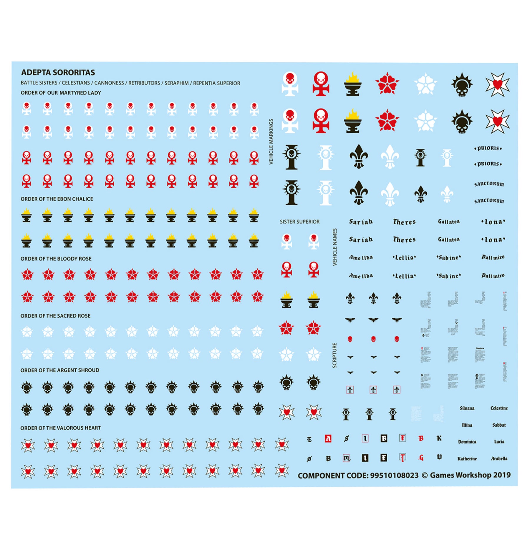 – 1x Adepta Sororitas Transfer Sheet containing 290 high-quality transfers