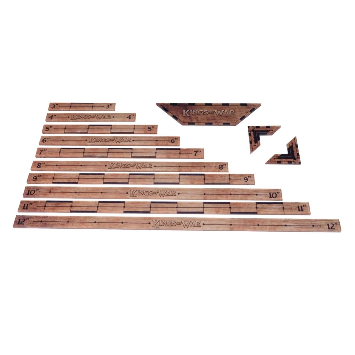 This Kings of War Game Accessories Set of high-quality acrylic tools is perfect for fast, accurate measuring in your games of Kings of War.