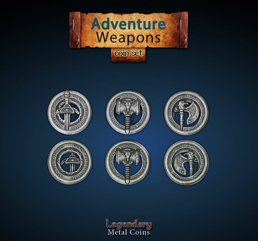 Legendary Metal Coins - Adventure Weapons Tokens (Drawlab)