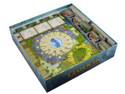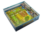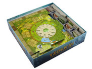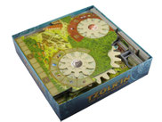 Insert compatible with Tzolkin®, and includes space for the Tribes & Prophecies® expansion. The design provides both efficient storage and improved game play. Many of the trays can be utilised during the game, and they greatly aid set-up and clear-away times. The board and rules act as a lid on top of the trays, as shown below.