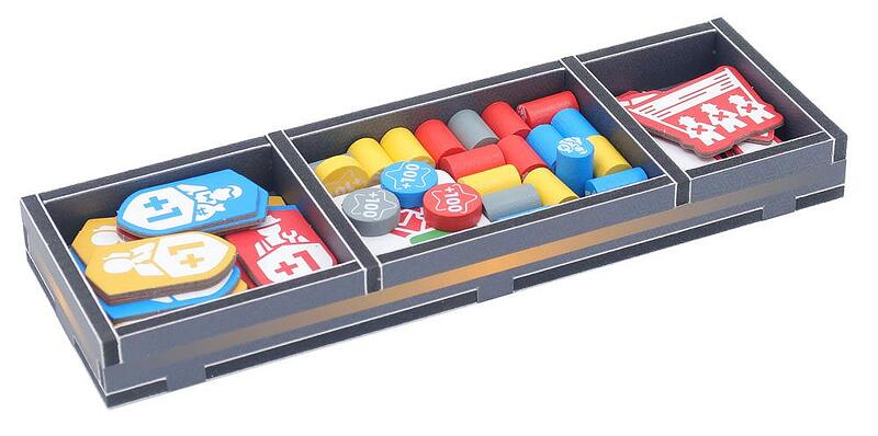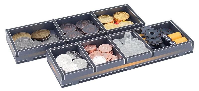 The full colour print really brings the trays to life, tying them in with the theme of the game and making it easier to see which components go where.
