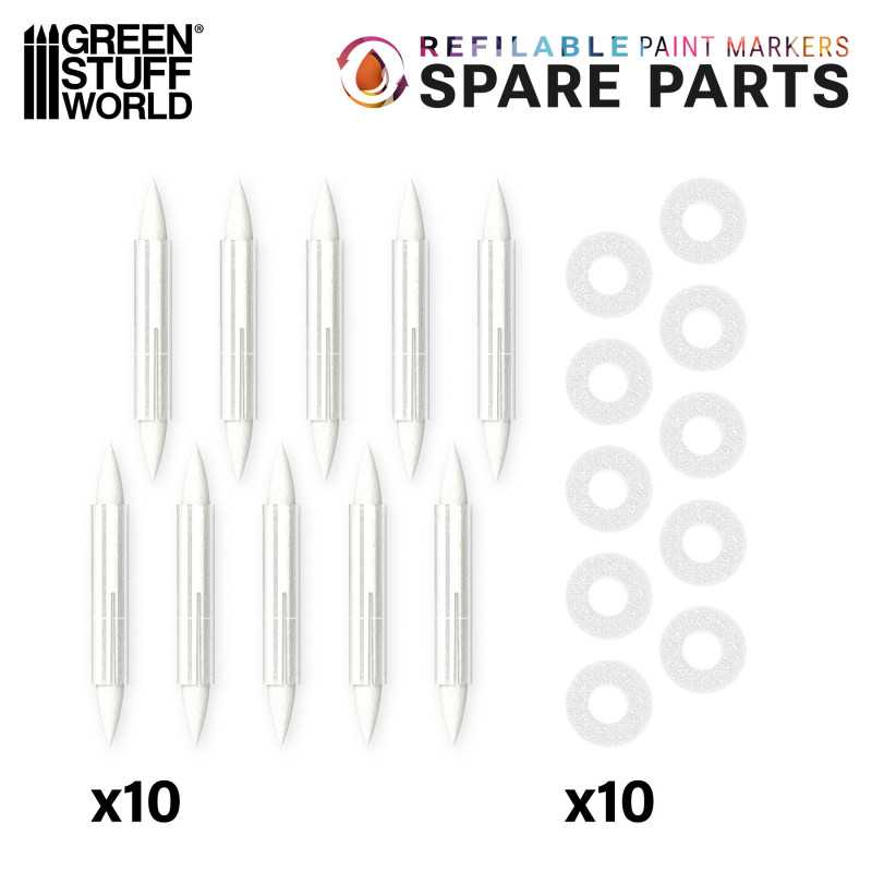 The tip refill pack is the perfect solution for extending the life of your refillable markers and keeping them always ready to paint. It includes 10 tips, 10 internal sponges, and 10 adapters, allowing you to replace parts worn out by intensive use or simply prepare additional markers in different colors.